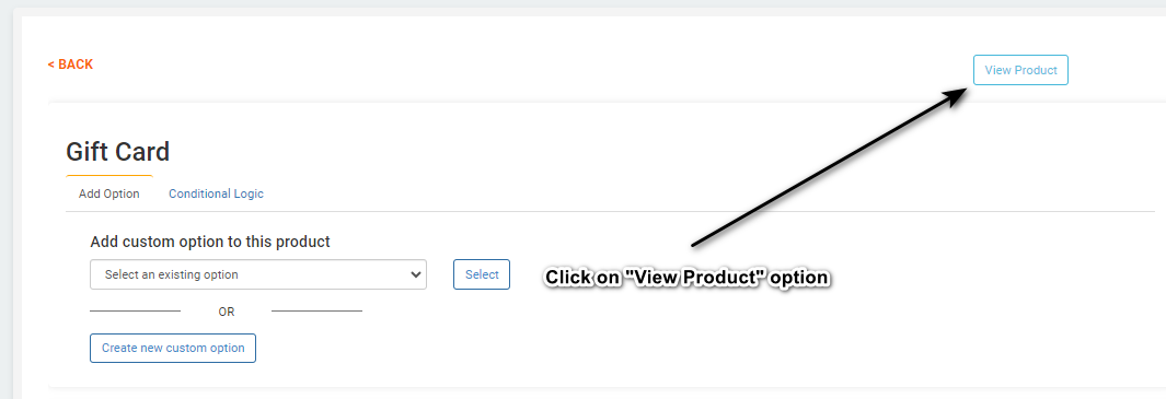 Here I selected gift card product, then click on "Add Options"